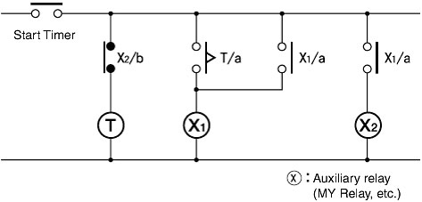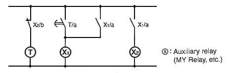 If the Timer is to be left in a timed-out status for extended periods of time, use it together with Relays in the following type of circuit.