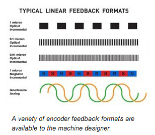 In addition to flexible resolution, flexible encoder technologies are a major benefit. Optical encoders using glass scales have long been a popular choice, but other technologies now provide competitive resolutions and costs. In applications that dont require exceptional precision, magnetic encoder technology is a very cost-effective alternative, and applications that do require high precision but not high stroke capacitive encoders allow for very high resolutions. Inductive encoders are a popular choice for applications directly exposed to heavy contamination, like coolant from a machine tool.
