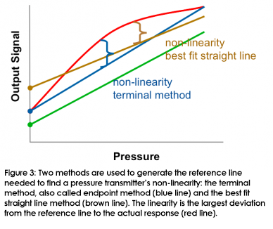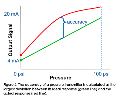 Manufacturers of pressure transmitters will not define a device's accuracy with only one variable. Accuracy takes into account several different variables, only one of which is non-linearity. In other words, non-linearity alone does not determine a device's overall accuracy.