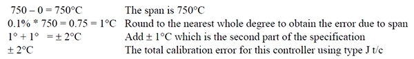 For most controllers, the degree of accuracy depends upon the type of sensor utilized. Most Watlow controller's accuracy is stated as percent of span. The accuracy statements can be found in the specification section of the user's manual. For instance: a controller accuracy is stated as "±0.1% of span, ±1C". The accuracy is dependent on the type of sensor and stated span. Assuming a type J thermocouples range is 0 to 750°C: